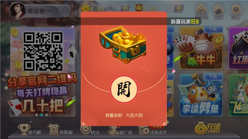 1、非常劲爆的有奖棋牌游戏,惊喜大奖免费抽,每天在线金币和救济金领不停