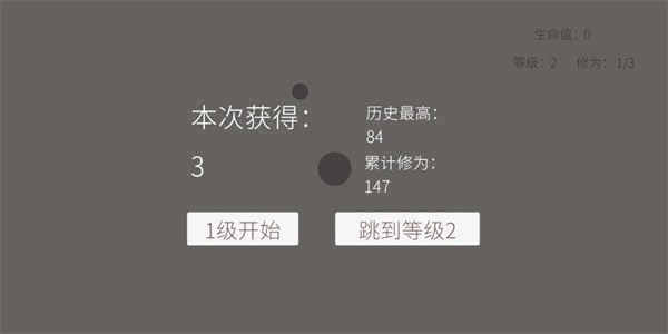 1、红框内大小灰球,注意左上黑点和右侧生命值3、等级1、修为0/0的状态显示。