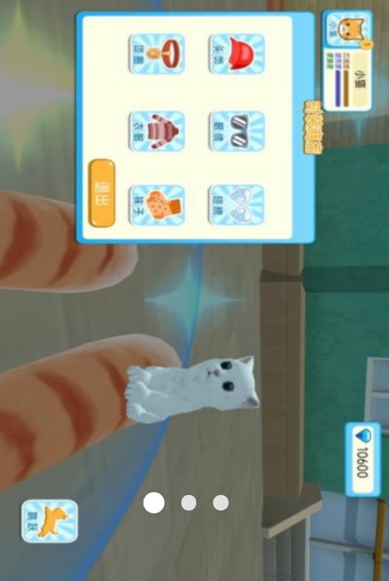 1、领养专属猫咪开启陪伴,橘猫爱撒娇、布偶粘人精,点击互动蹭手心,饿了会叼食盆撒娇,日常点滴超治愈。